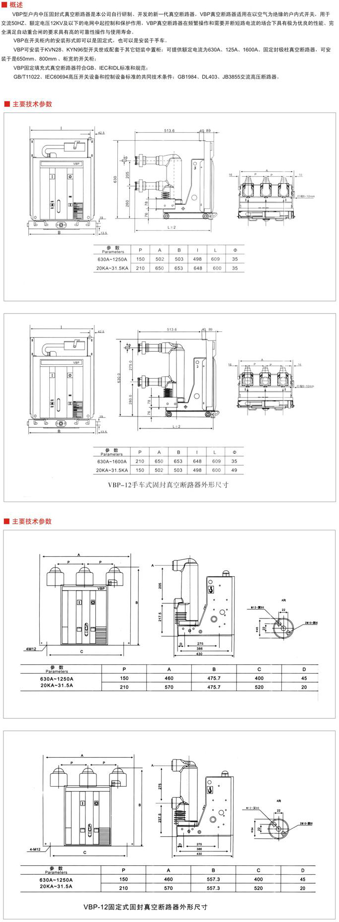 VBP系列戶內中壓固封式真空斷路器